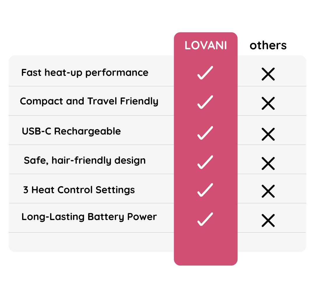 Lovani heats up in about 30 seconds, so you’re never stuck waiting. Perfect for quick touch-ups before heading out the door.
